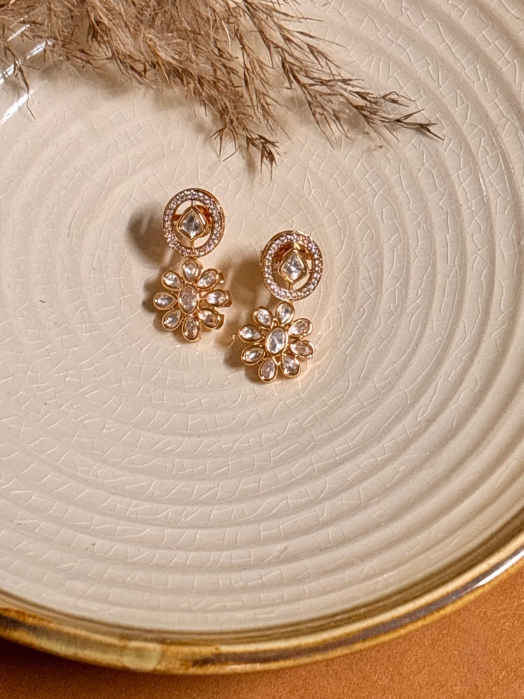 These small earrings feature a classic design with plain Polki and Kundan accents. Handcrafted with precision, they offer understated elegance and versatility, making them a perfect choice for adding a touch of sophistication to any outfit.