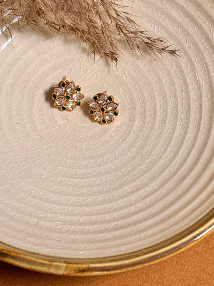 Delicate Green Kundan Studs