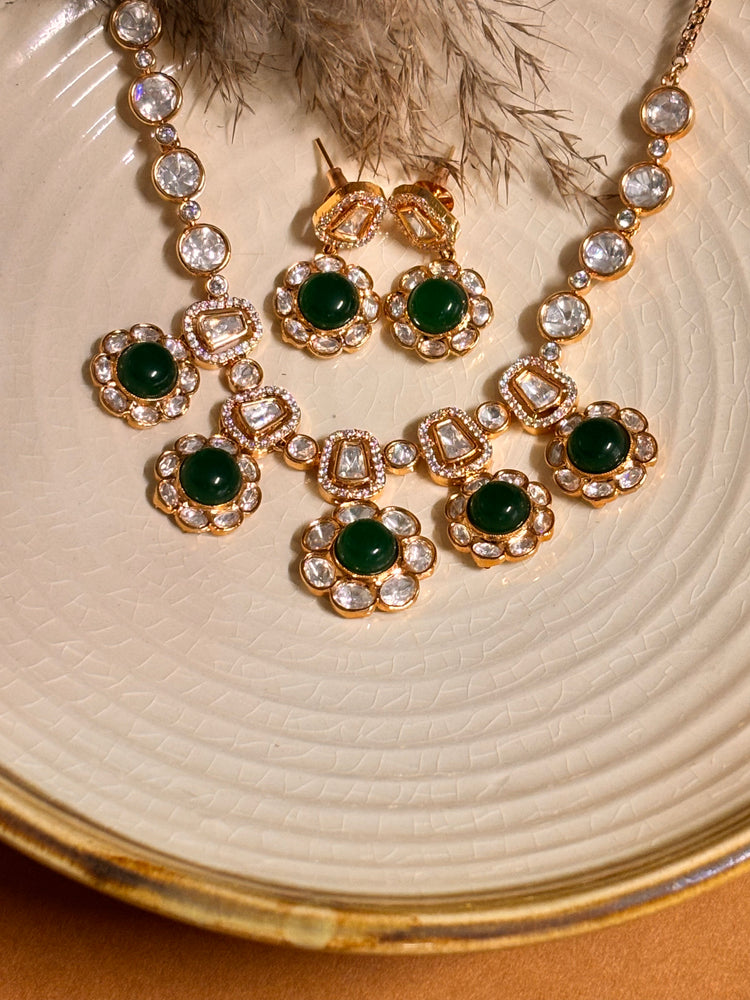 Elegant Emerald Polki & Kundan Choker Set