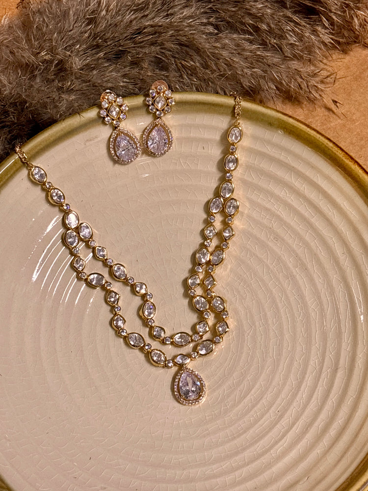 Elegant Layered Polki Necklace Set