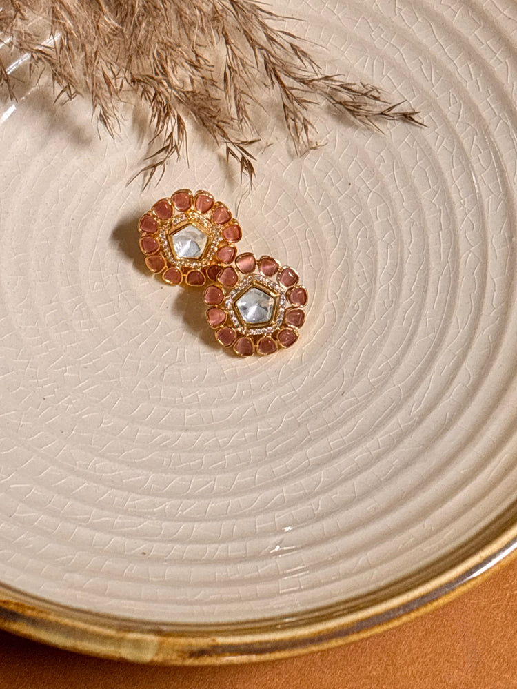 Graceful Pink Kundan & Polki Studs