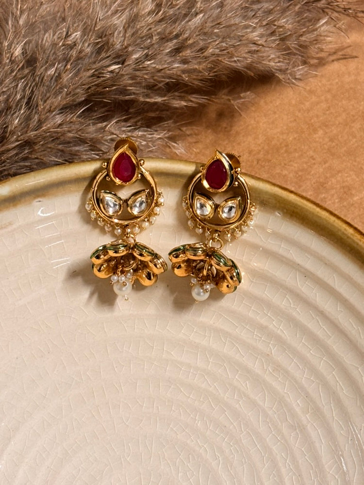 These vibrant multi-colored Jhumkas are a celebration of traditional charm with a playful twist. Handcrafted with an array of colorful accents and intricate detailing, they add a bold and lively touch to any ensemble, perfect for festive occasions and special celebrations.
