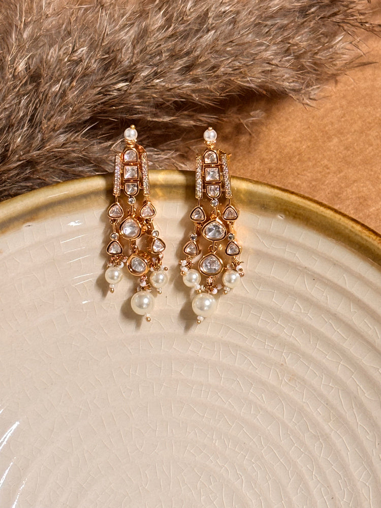 These Kundan earrings are adorned with elegant bead tassels, adding a dynamic and graceful touch to the classic design. Handcrafted with intricate Kundan work, they combine traditional charm with a modern flair, making them a standout accessory for any special occasion.